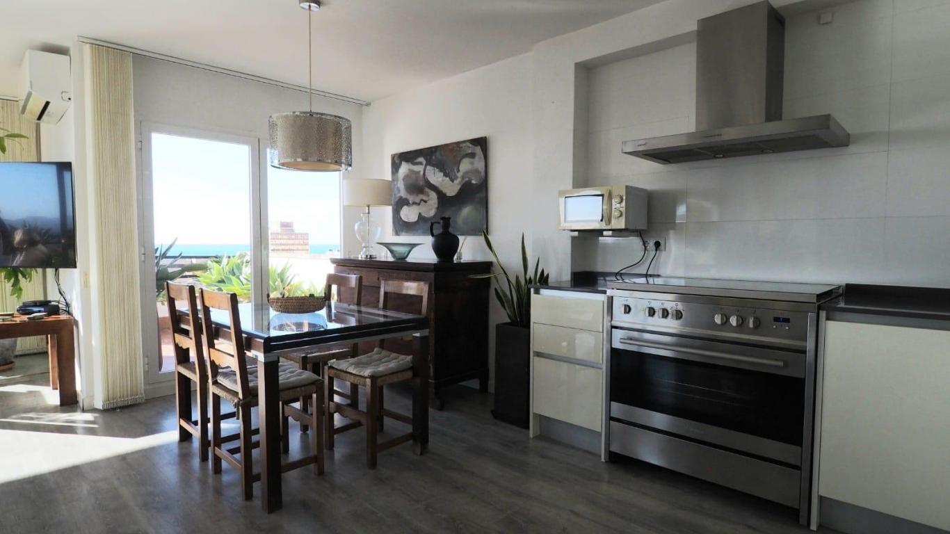 The highlight of this property is the large private rooftop terrace with uninterrupted views over the Mediterranean Sea, offering ample space for lounging, dining, and relaxing in total privacy.
