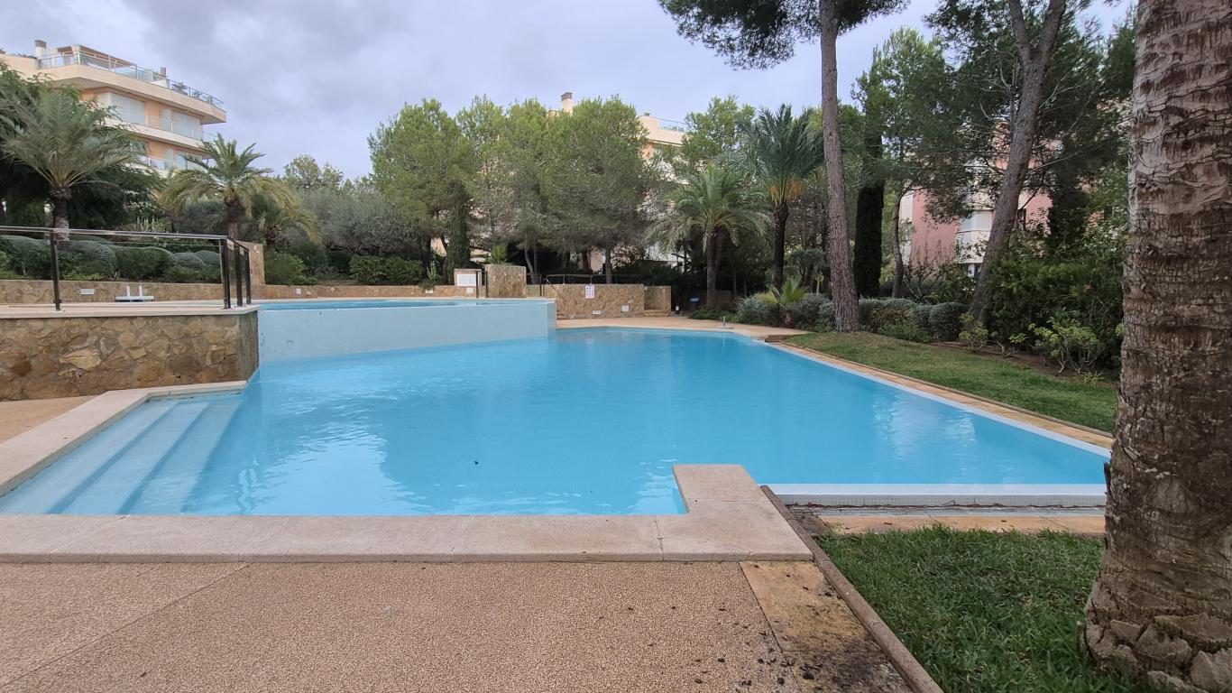 This is a great apartment in a community with many perks in the tranquil area of Sol de Mallorca, just a 10 min walk from a romantic bay. Within 15 minutes one can reach Palma by car, within 10 minutes the exclusive marinas Port Adriano and Puerto Portals, various golf courses are within a short drive